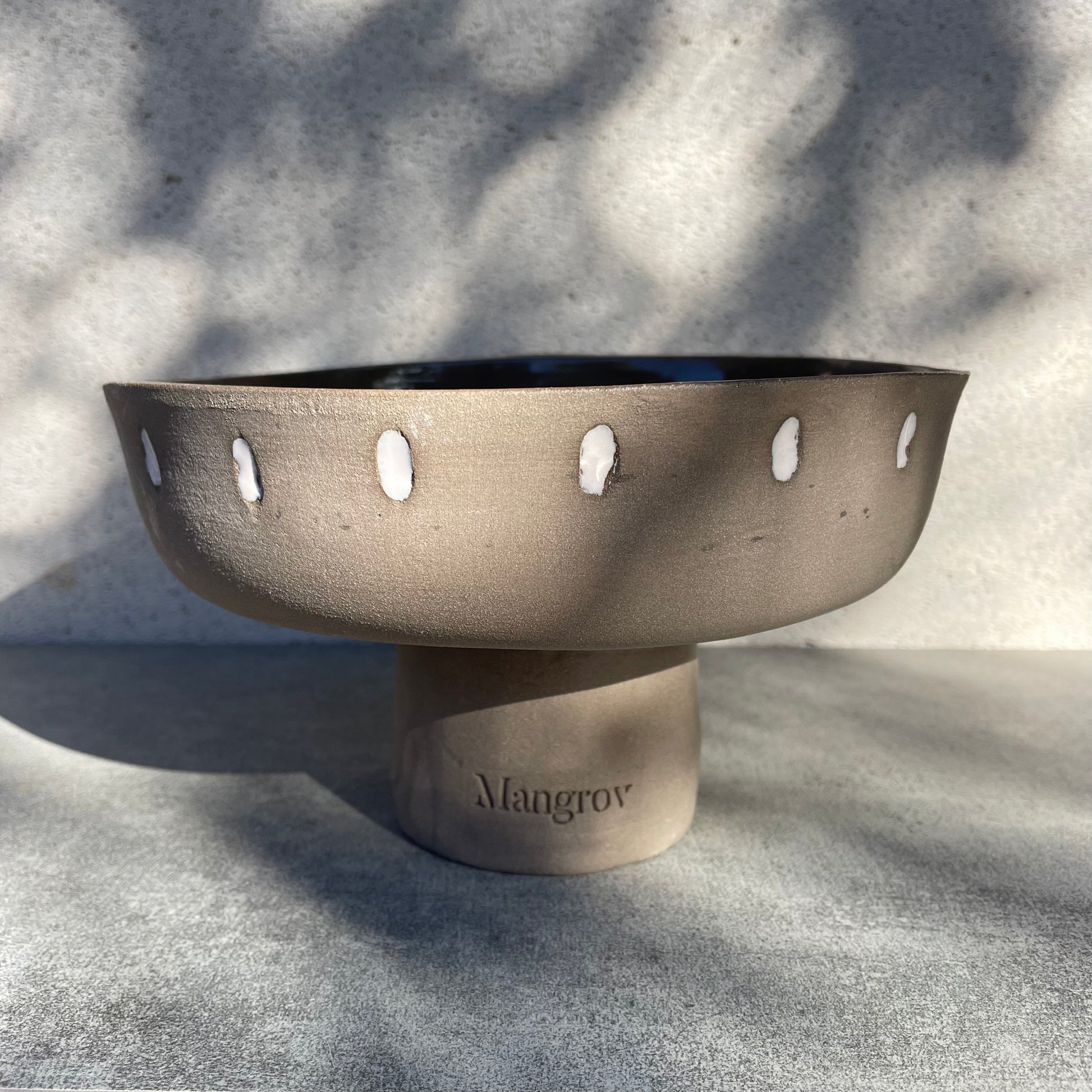 Tamamen el yapımı bu stoneware kase, sade formu ve dokusuyla Mangrov ruhunu yansıtıyor. Yükseltilmiş tabanı ve doğal yüzeyi, bir ağacın gövdesini andırırken; üzerindeki beyaz detaylar tasarıma dingin bir ritim katıyor. Hem günlük sunumlarda hem de dekoratif bir obje olarak kullanılabilir. Dayanıklı stoneware yapısı sayesinde uzun ömürlüdür.