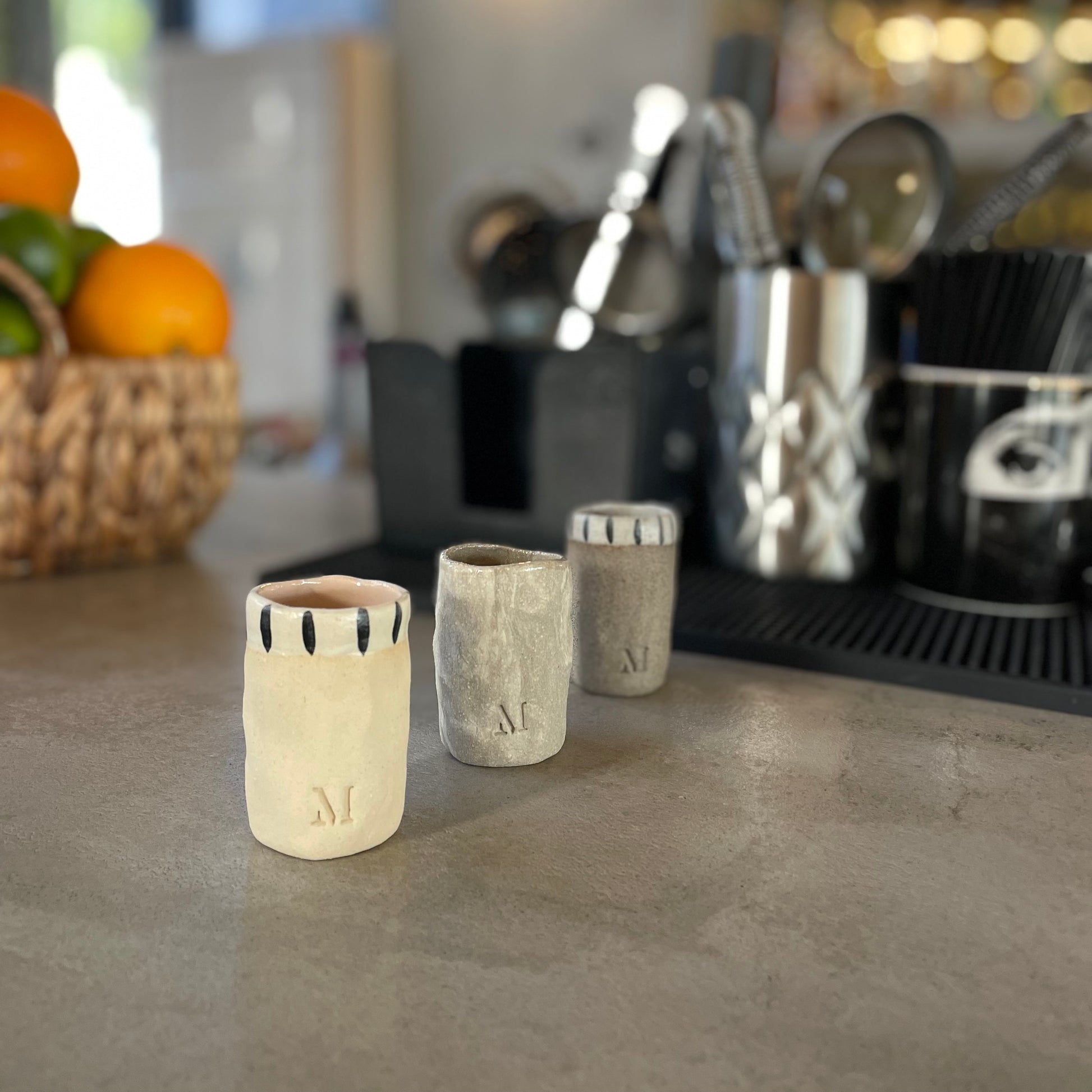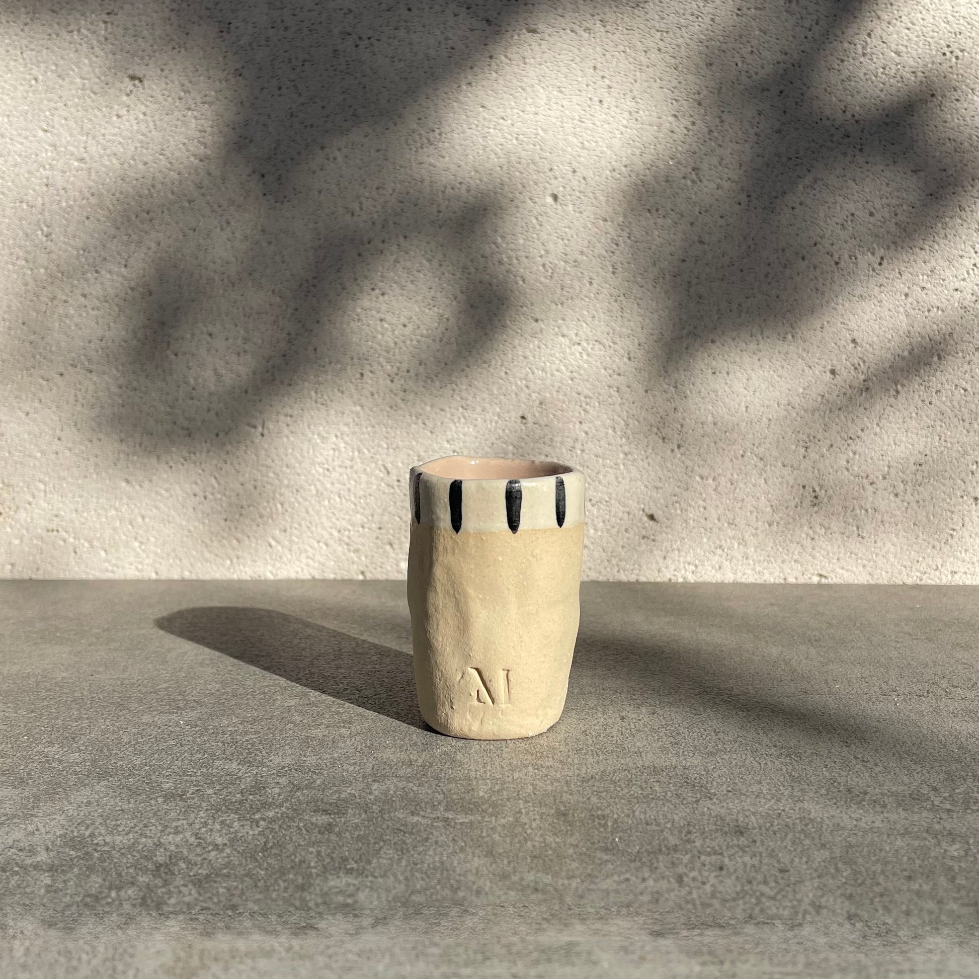 Tamamen elde şekillendirilmiş bu stoneware shot bardağı, 35 ml hacmiyle özel içim deneyimleri için tasarlandı. Doğal dokusu ve minimal formu, hem günlük kullanıma hem de davet sofralarına zarif bir eşlikçi olur. Dayanıklı yapısı sayesinde uzun ömürlü kullanım sunar, küçük detaylarda el işçiliğinin sıcaklığını hissettirir.