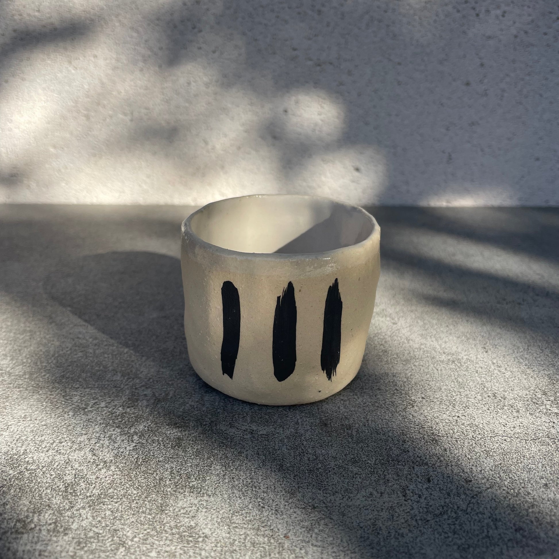 Renk: Dışı sırsız, dokulu krem renginde siyah motifli, içi krem rengi sırlı.